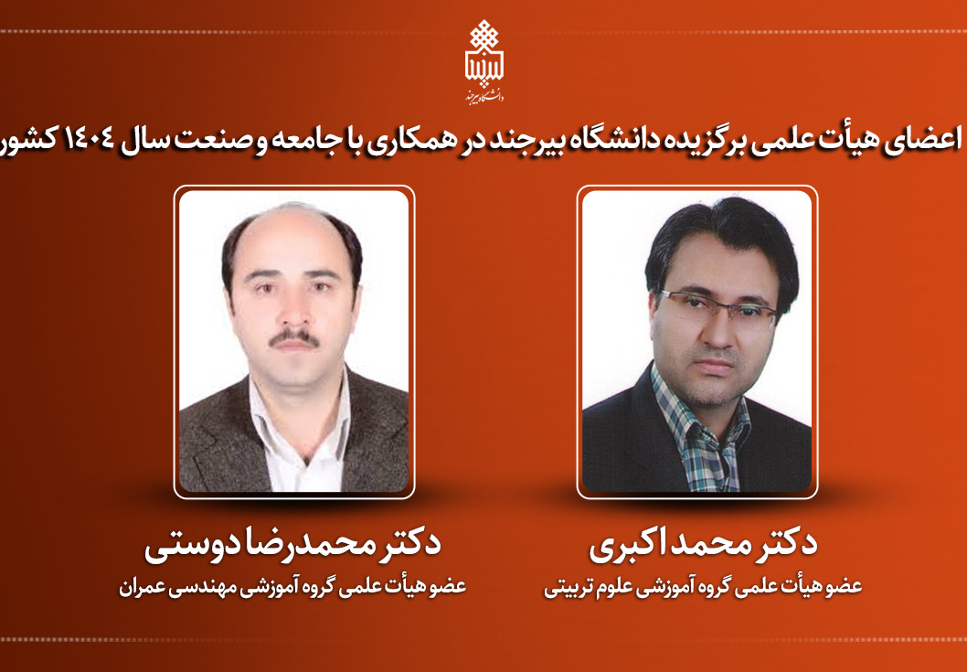 دکتر هاشم جهانگیر، استادیار گروه مهندسی عمران دانشگاه بیرجند، در بیستوششمین جشنواره تجلیل از پژوهشگران، فناوران و نوآوران کشور، بهعنوان ...