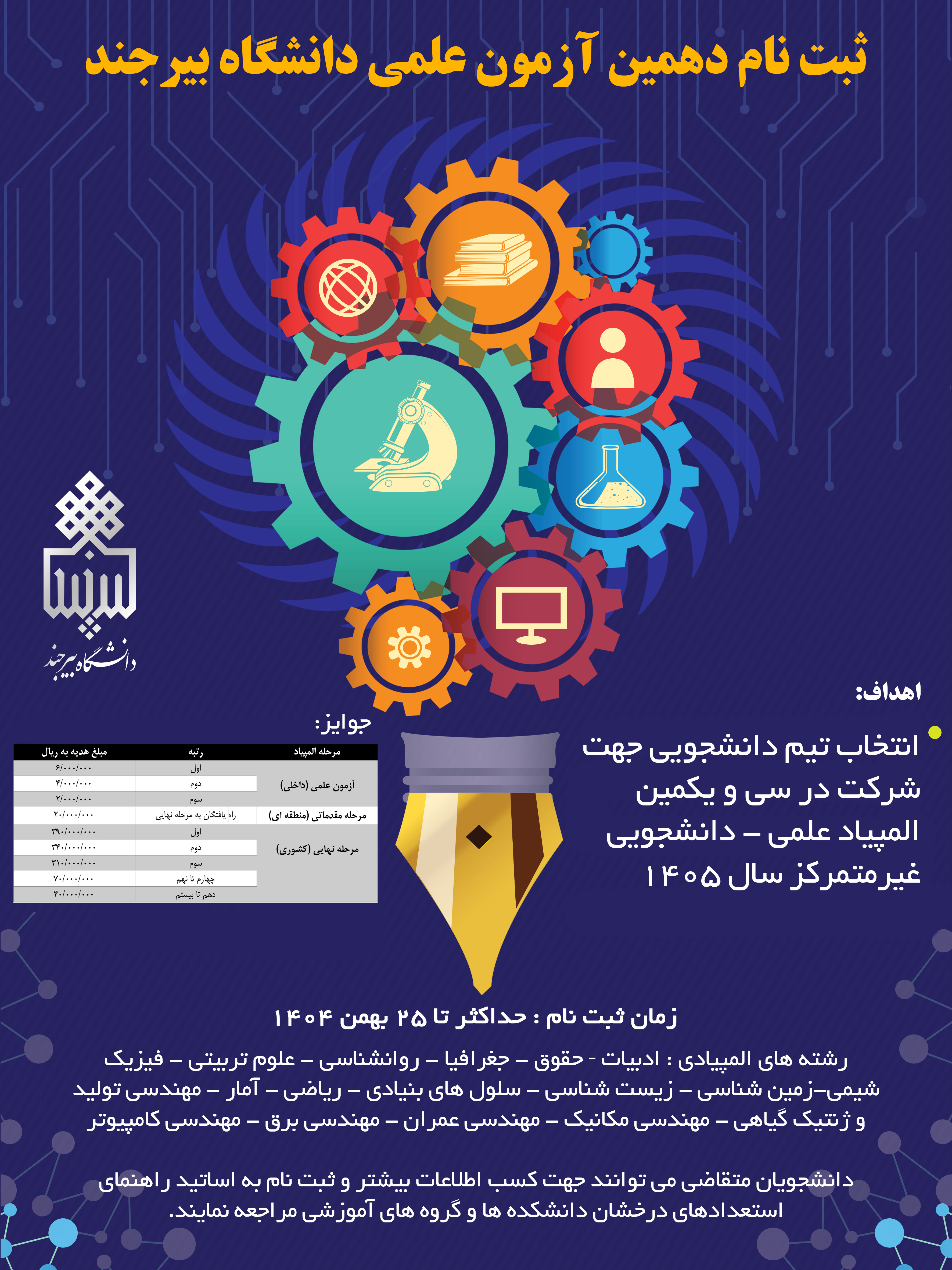 ثبت نام دهمین آزمون علمی با هدف انتخاب تیم دانشجویی جهت شرکت در سی و یکمین المپیاد علمی ـ دانشجویی غیر متمرکز سال 1405